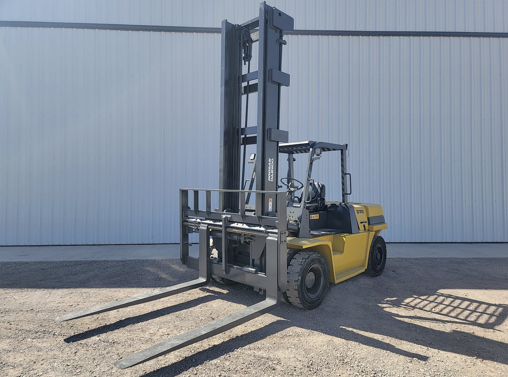 Este montacargas usado Doosan D70S usado es la solución de alto rendimiento que tu bodega necesita, combinando una robusta capacidad de carga de 15,500 lbs con un motor Diesel Doosan de máxima eficiencia. Equipado con una torre de 2 etapas que alcanza un levante máximo de 236" y sistema de movimiento lateral para maniobras de precisión, este equipo es ideal para aplicaciones pesadas en construcción, logística y manejo de materiales industriales.