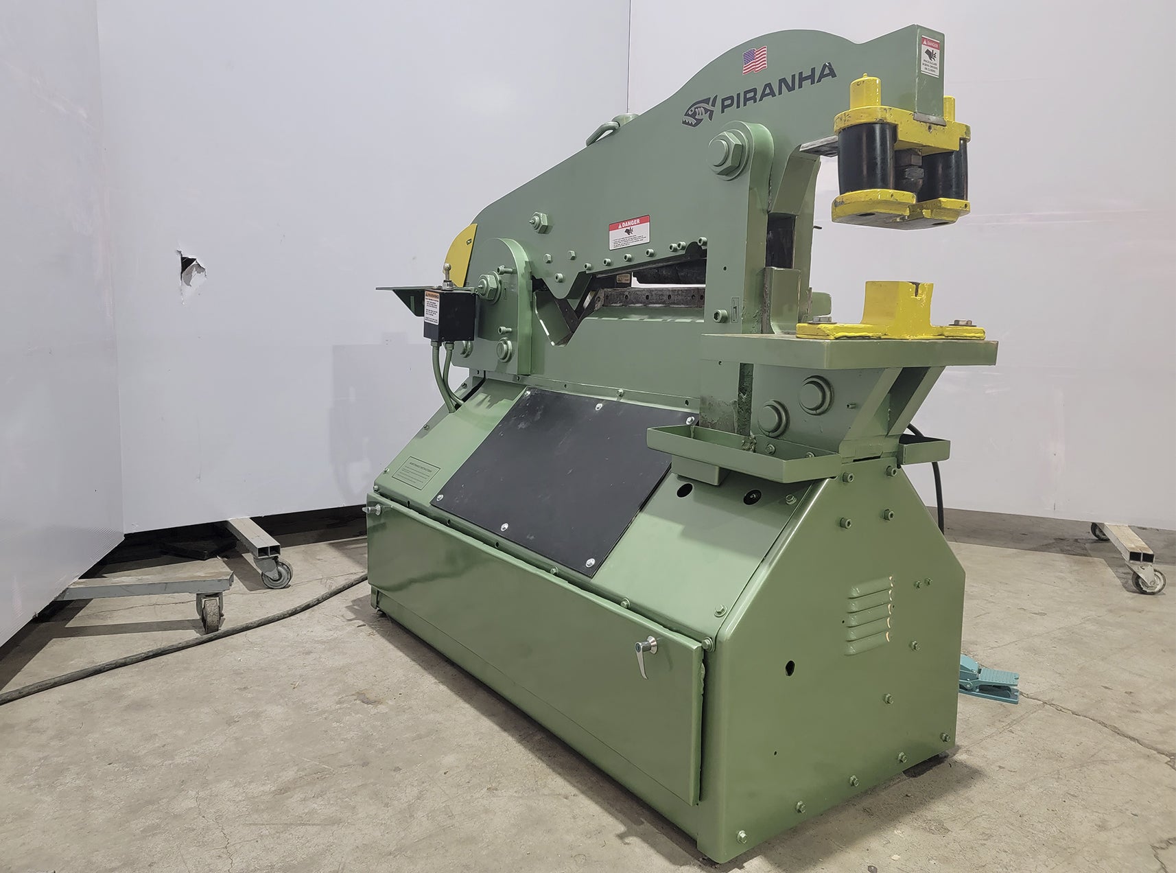 Maximiza la eficiencia de tu taller con el metalero usado hidráulico Piranha P70, la solución integral de 70 toneladas diseñada para dominar los proyectos de fabricación metálica más exigentes. Con sus 5 estaciones de trabajo de fácil acceso, este equipo te permite realizar operaciones de punzonado preciso, corte de barra (redonda y cuadrada), cizallado de soleras de hasta 18", corte de ángulos y escotado profesional, todo en una sola huella compacta.